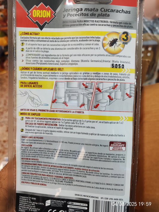 de 5 estrellas Orion - Jeringa Matacucarachas y Insectos en Gel para Grietas, Respiraderos y Rincones - 8 gr